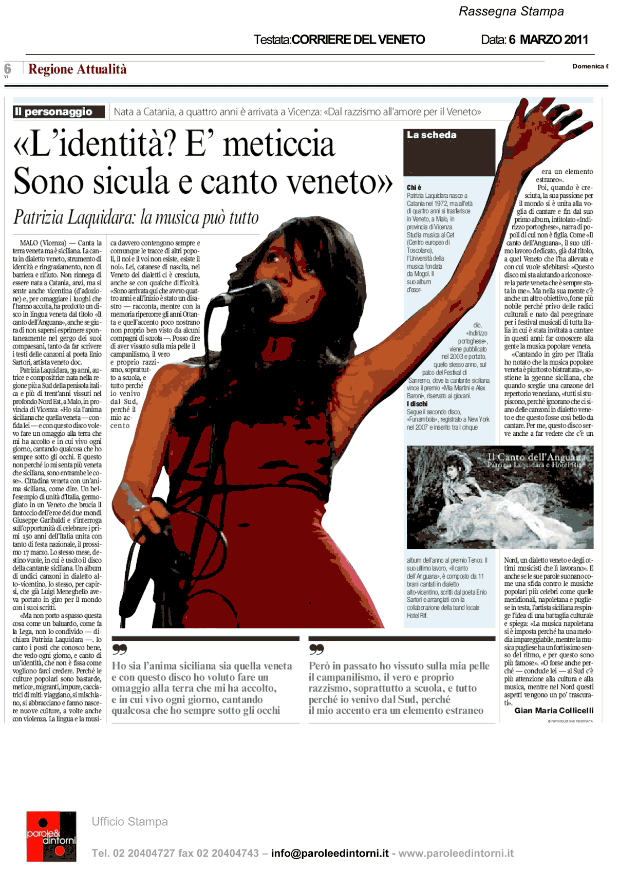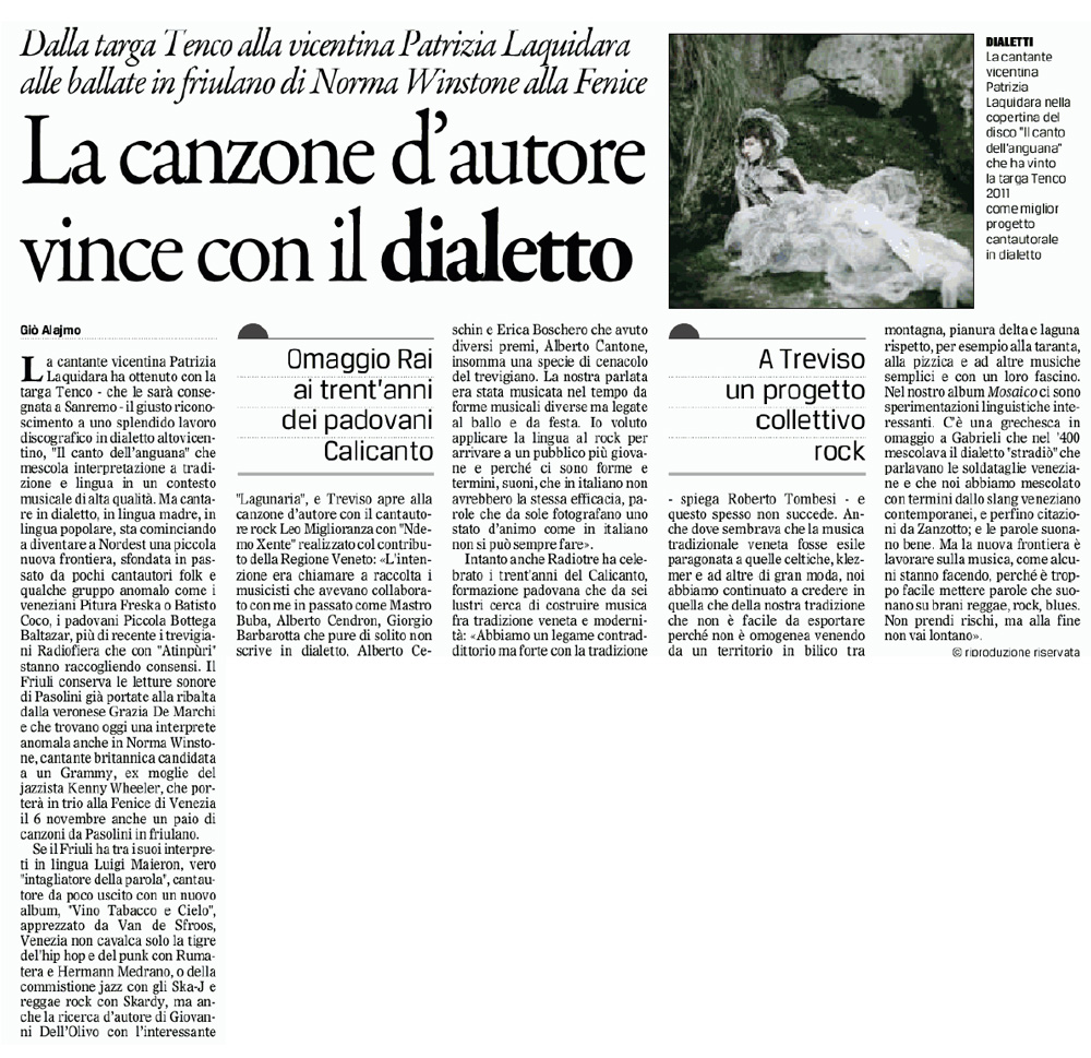- Con un disco in dialetto vince il Premio Tenco (Il Gazzettino)