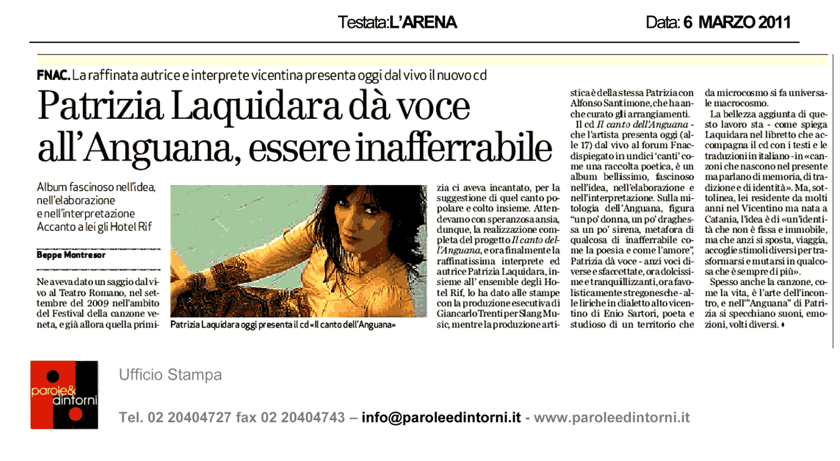 - Patrizia Laquidara. Il Canto dell'Anguana (ACCORDO.IT)